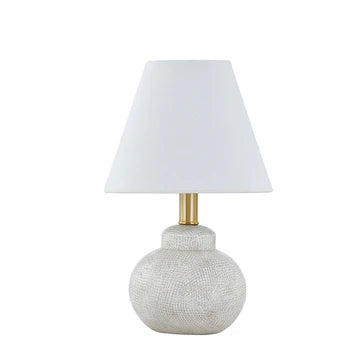 Ada's distinctive shape and texture make it a standout in any setting, while its neutral white with grey undertones adds a serene aesthetic. This contemporary lamp has an abundance of depth, texture, and high-end style all in a small frame. Complemented by gold hardware and an empire shade, Ada will quickly become your favorite piece. Its smaller frame makes it ideal for those small nooks that need a little added light.