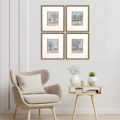 Exclusive hand embellished giclee with gold leaf matting. Framed in an antique gold wood with embossed weave pattern and charcoal side.