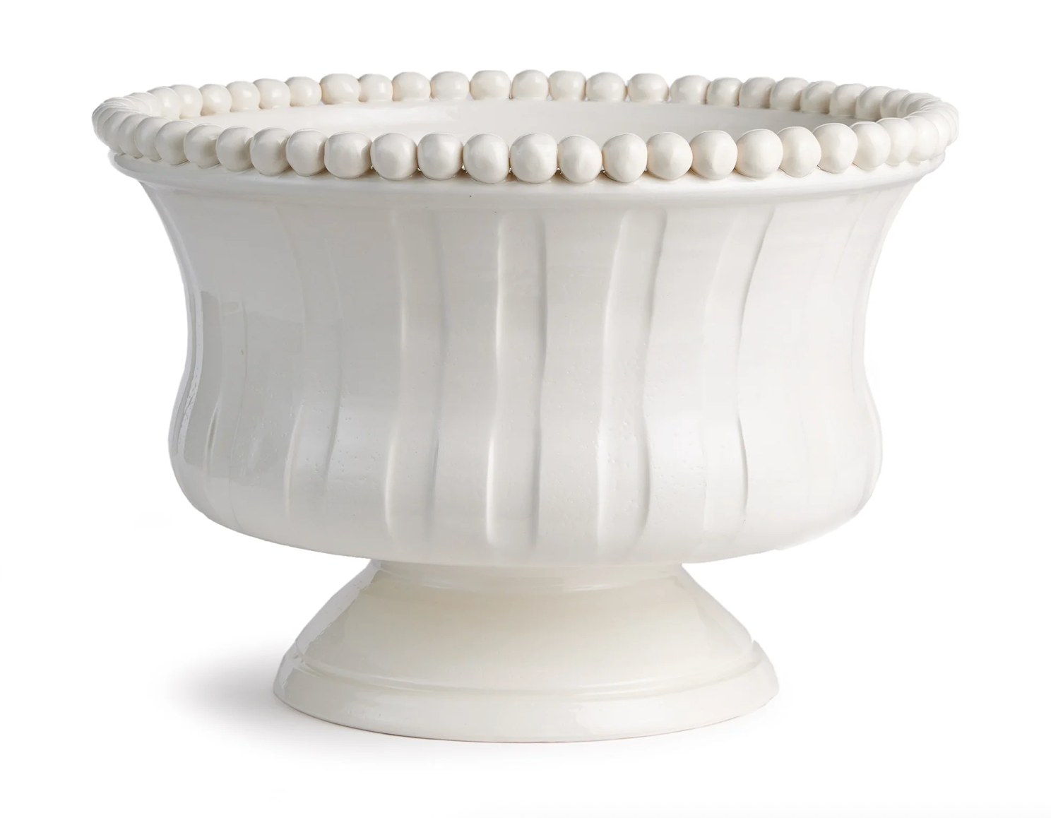 The Coletta Decorative Footed Bowl is handmade by Italian artisans in Tuscany, Italy. The subtle ribbing and hand-applied beading are made with genuine attention to detail. With a classic Italian craftsmanship passed down through generations, each piece is a true original.