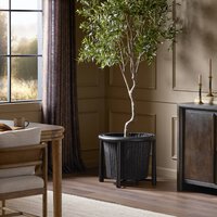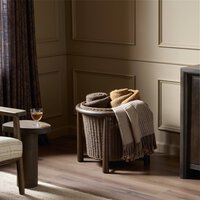 Keep things organized, indoors and out. Nestled into a solid teak frame, the spacious woven basket can also be used as a planter. Safe for outdoor spaces. Cover or store indoors during inclement weather and when not in use.