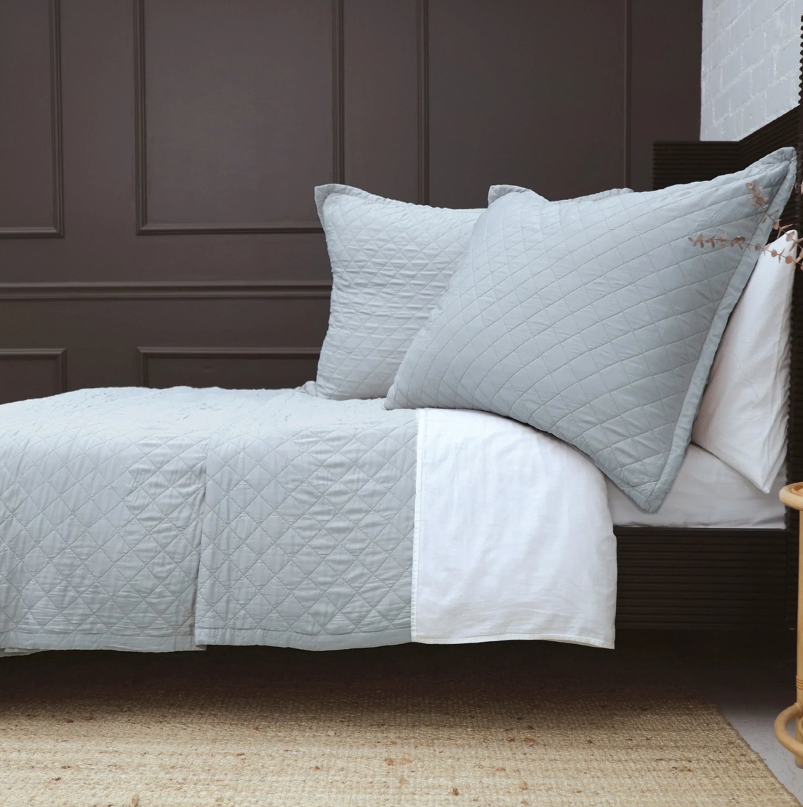 The exquisite silkiness of the bamboo sateen makes the Monaco coverlet a luxurious and indulgent touch to any bed. It is washed for softness and features a 1” flange on the coverlet and pillows. Envelope closure on pillows.
