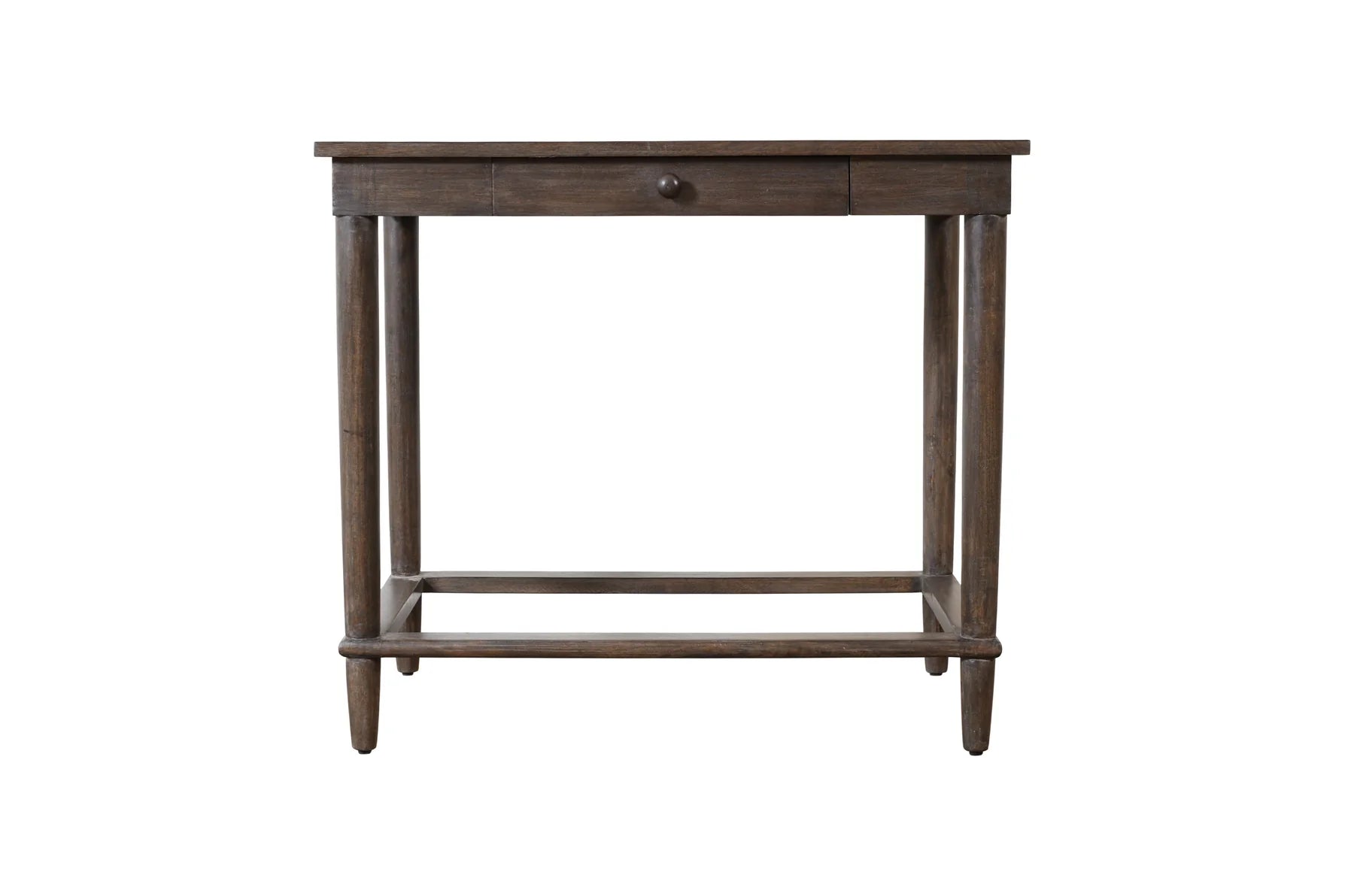Old-world charm blends seamlessly with contemporary styling in our Nolan Table. Crafted from rich brown mango wood, it features jointed wooden bars along the lower legs for added reinforcement and stability. The table includes a single drawer with a wooden knob handle, providing a stylish storage solution and making it an ideal nightstand.