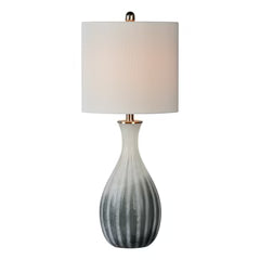 Add some texture to your space with this mix of white and blue-gray. Its vase body shape with a stunning blue/grey and white ombre creates the perfect contemporary style lamp! Adding to its contemporary style is the silver hardware and natural linen drum shade.