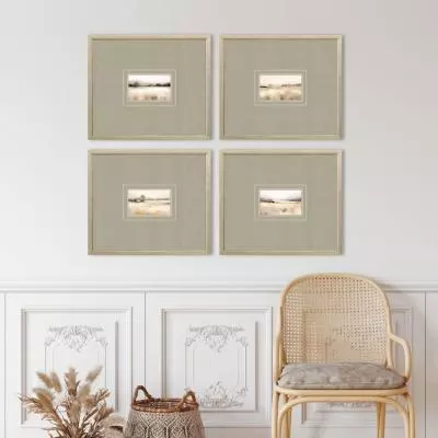 Soft color tones highlight petite landscapes on fine art paper. Accented with extra-wide premium matting and framed in a sleek champagne gold wood.