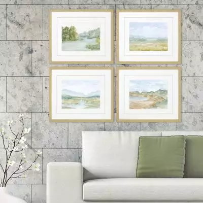 Giclees are hand deckled and float mounted with white matting. Framed in a ribbed distressed gold finish moulding.